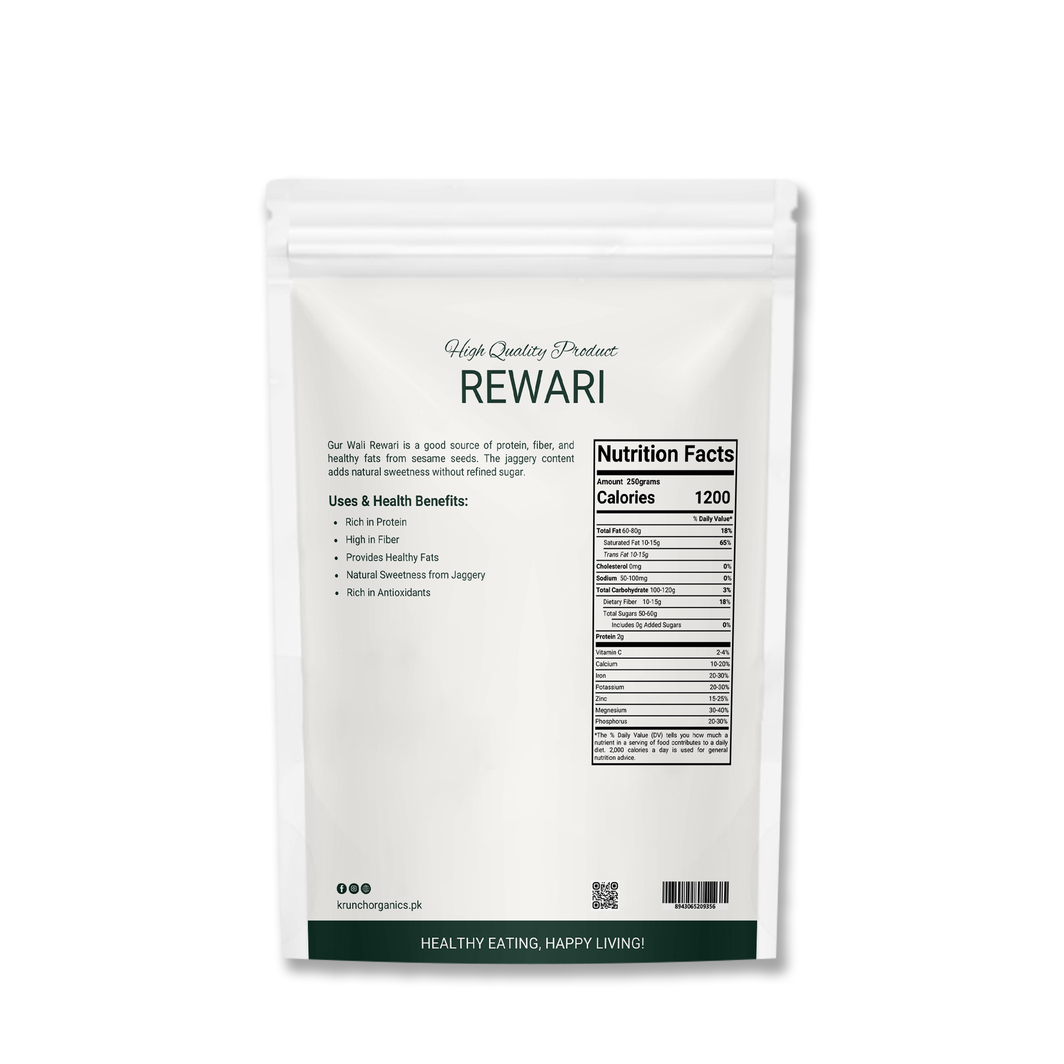 Compact and calorie‑dense, Rewari is engineered as a portable energy snack—ideal for commutes, hikes, or work breaks. Each bite gives a quick, sustained boost without refined sugars or artificial additives.